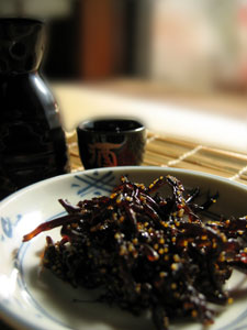 どんな物かと言いますと、メインにきくらげを細かく刻み(イメージでいくとそうめんをひとまわり太くしたぐらい)ししゃもの卵としその実と一緒に薄味で炊いた物です。